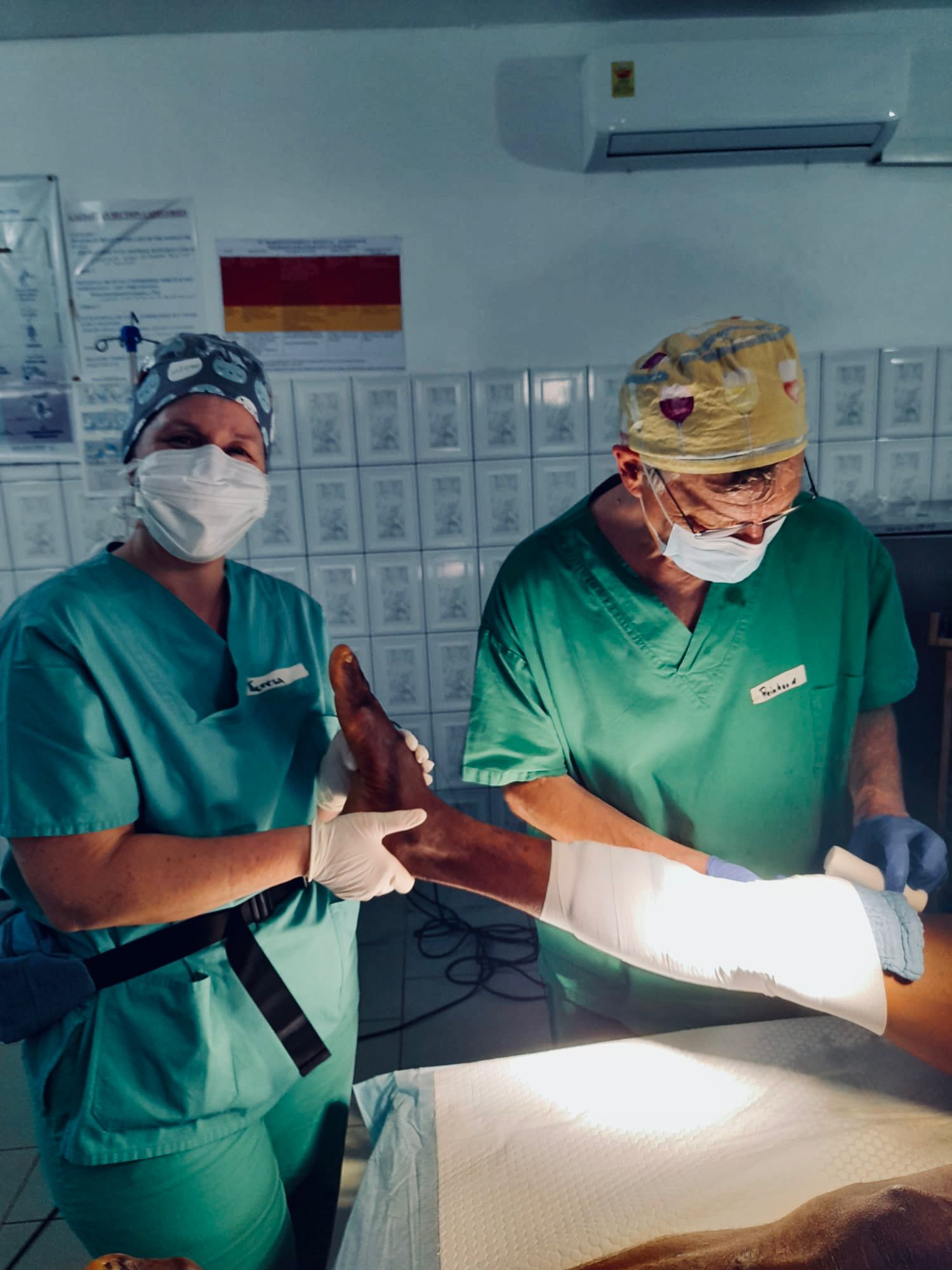 Die Arbeit ist intensiv, die Stimmung bleibt großartig. Bei tropischer Hitze und seit zwei Tagen ohne fließendes Wasser heißt es dann nach einem aufreibenden OP-Tag: Eimerdusche statt Wasserhahn. Zum Glück ist die Wassertonne noch halb voll – also alles im grünen Bereich!